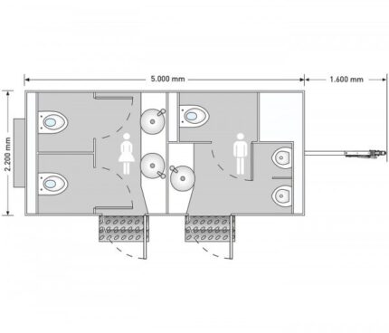 – compartiment hommes – 2x WC, lavabo avec meuble bas, chauffe-eau instantané,