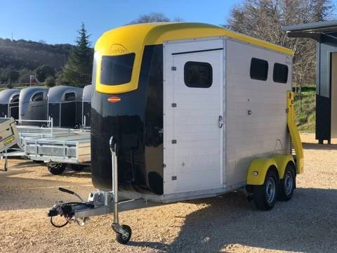 2 Pferde mit Sattlerausstattung und Vorderdeck 4125 x 1750 x 2300 mm (ideal für große Pferde)