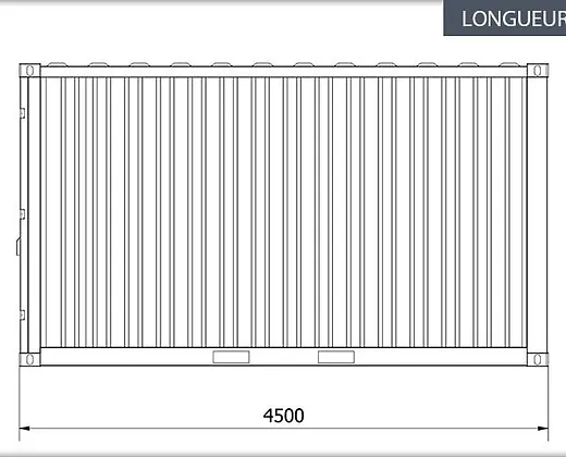 Ext Dim (in m) 4,50 x 2,20 x 2,25 Dim int (in m) 4,30 x 2,07 x 2,02 Volumen (in m3) 18 Tragfähigkeit (in kg) 9000 RAHMEN