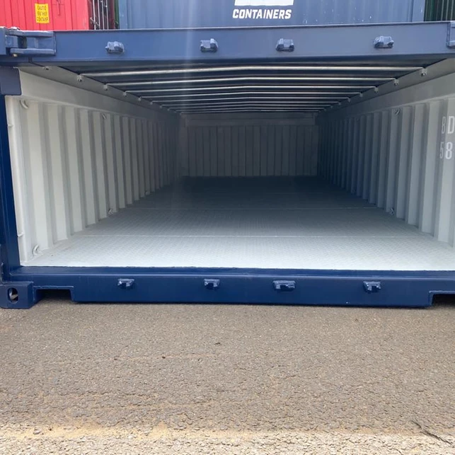 Dieser 20-Fuß-Open-Top-Container verfügt über ein offenes Dach und eignet sich daher ideal für die Beladung von oben. Ein oben offener Container eignet sich besonders für große oder sperrige Gegenstände, die nicht einfach durch die Türen eines Standardcontainers passen. Dabei handelt es sich häufig um Maschinen oder Teile, die mit einem Kran in den Container geladen werden.