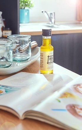 - Die nach hinten versetzte Küche bietet Volumen und Platz.