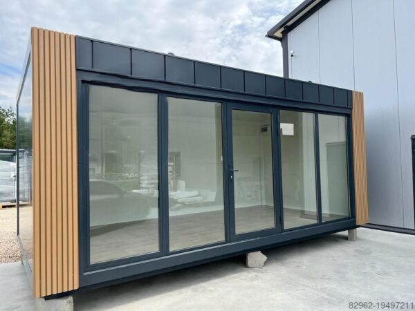 Convient comme bureau, pavillon de vente ou stand de service. Isolé et entièrement équipé – prêt à être utilisé immédiatement toute l’année.