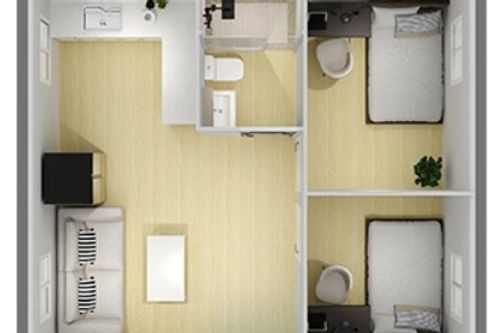 Equipé d’un dépliant ; murs et toiture isolés ; cuisine d’angle avec comptoir, évier, mitigeur, armoires supérieures, armoires de cuisine et tiroirs ; 2 chambres / pièces supplémentaires ; salle de bain avec toilettes, douche à effet pluie, lavabo avec miroir et robinetterie de toilette ; Plancher SPC en aspect bois ; prises de courant (connexion 230 volts) ; huisseries à double vitrage ; l’eau, l’électricité et le drainage peuvent être facilement connectés est préparé ; portes coulissantes ; armoire à compteurs ; interrupteurs d’éclairage ; points de raccordement pour l’éclairage au plafond (y compris les plafonniers) ; y compris les plinthes en aluminium pour le sol ;