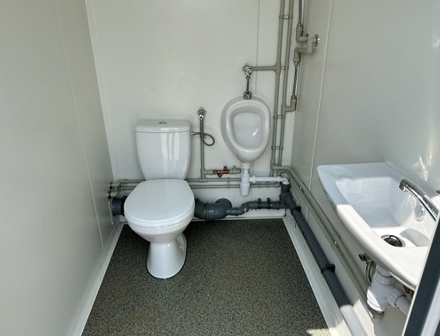 Conteneur Sanitaire 3 Cabines : WC, Urinoir + Chaudière, Douche