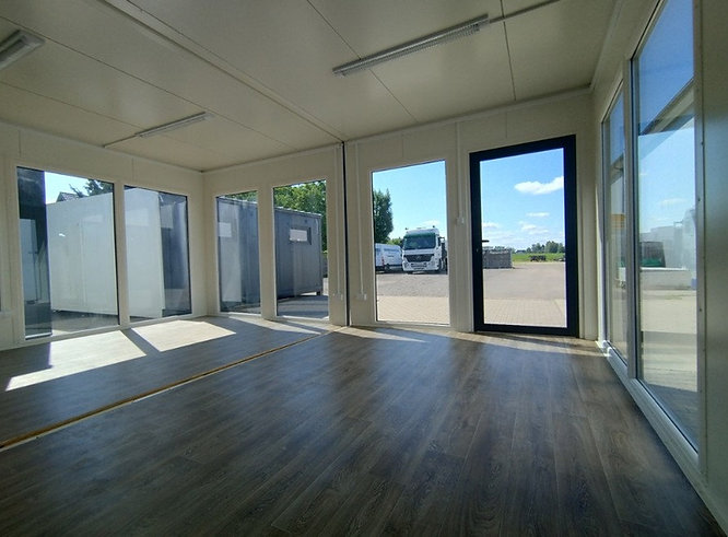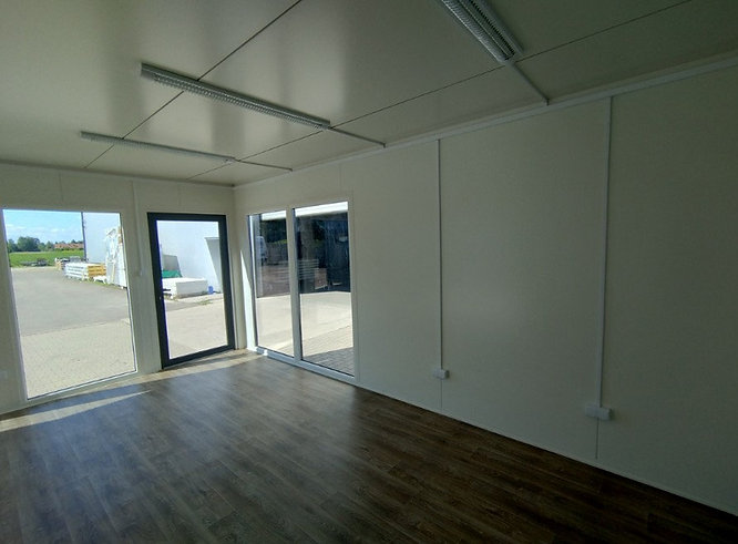 Module double 6 × 3 m juxtaposé formant 36 m² utiles, conçu pour une utilisation toutes saisons grâce à une enveloppe en panneaux sandwich hautement isolants. Idéal comme bureau de vente, service clientèle ou base-vie de chantier, il est livré prêt à raccorder : alimentation électrique 230 V, arrivée d’eau et évacuation. La structure acier et les finitions professionnelles assurent durabilité, faible maintenance et mobilité (transport et repositionnement aisés).