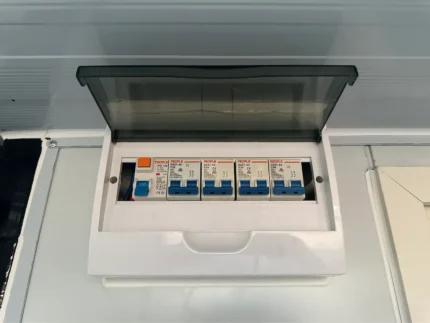 - Espace bureau : 5 doubles prises IP44, 2 interrupteurs IP44, éclairage LED encastré.