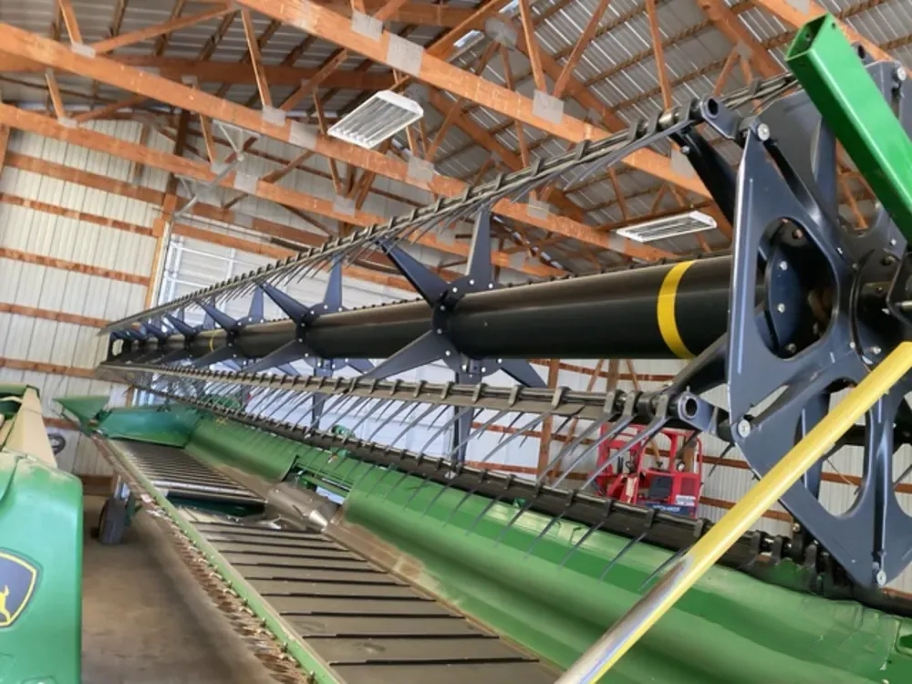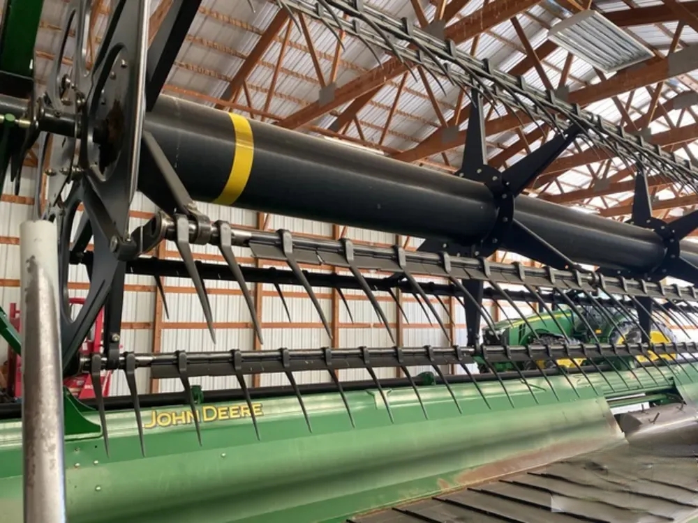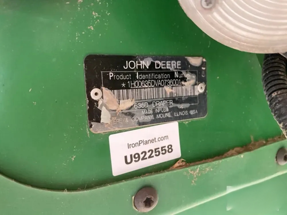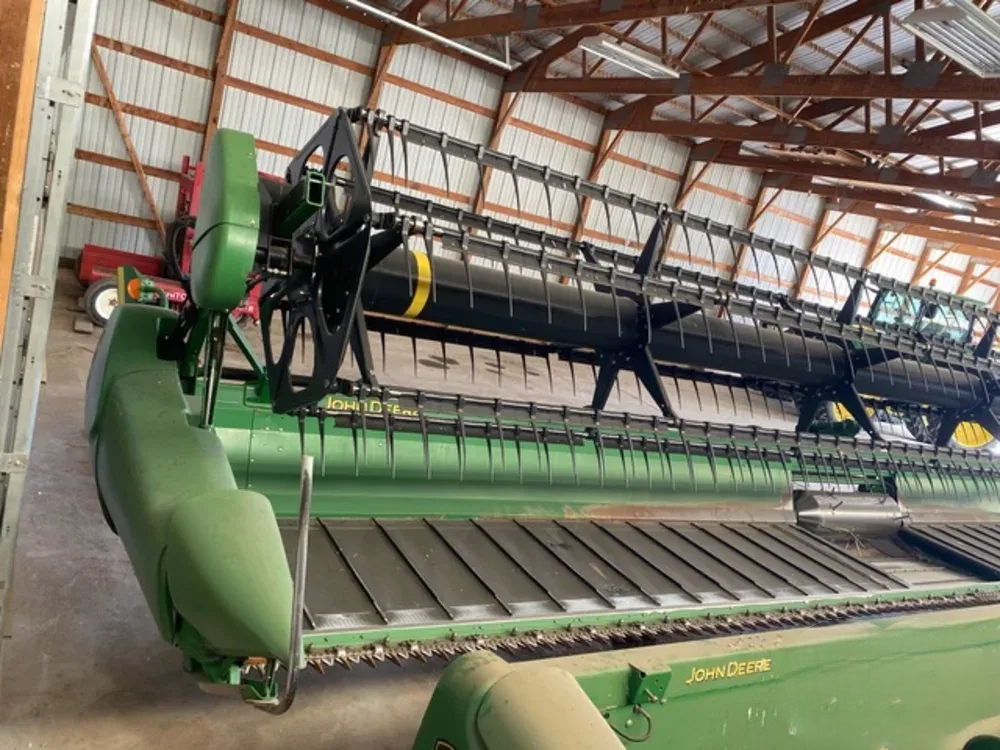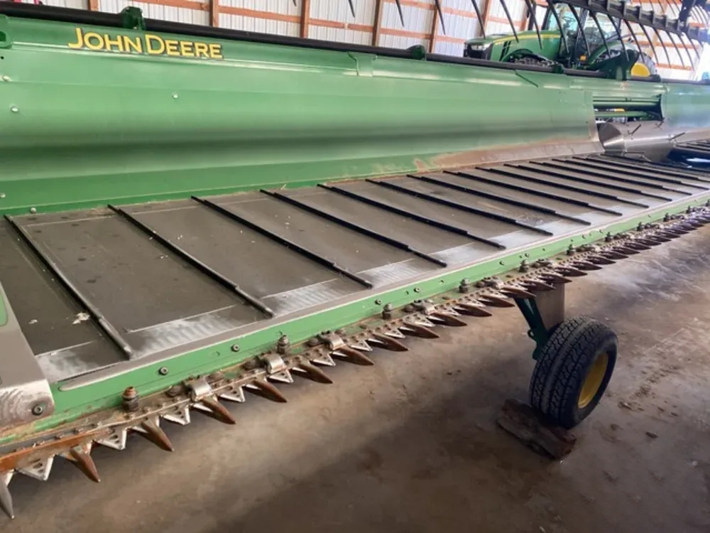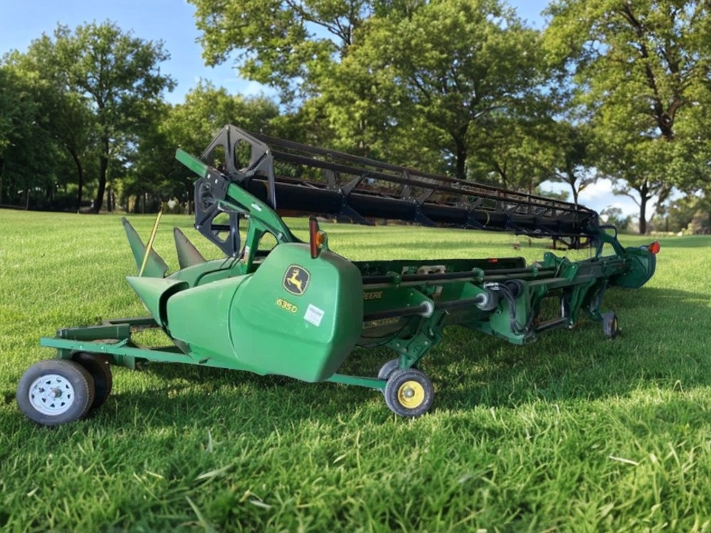 Moissonneuse-batteuse John Deere 635D de 2010, barre de coupe de 10,7 m (35 pi). Le nombre d’heures d’utilisation et l’état indiqués sont ceux en vigueur au moment de la publication