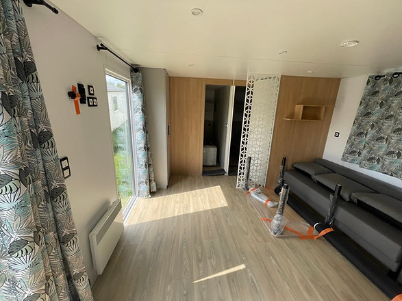 Willerby Lumic Dimensions:1000 x 370 Chambres à coucher:2 Équipement de base hotte Lumière extérieure Chauffage central Sol entièrement PVC Double vitrage Lit facile à soulever pour un espace de rangement supplémentaire Rideaux Combiné réfrigérateur/congélateur intégré 70/30 Châssis en plastique Bardage extérieur en plastique Gouttières en plastique avec tuyaux de drainage Tables de nuit Toit en tuiles plaque de cuisson 4 feux Portes-fenêtres) Connexion TV Couverture en dentelle Câbles isolés Meubles de salle de bains luxueux détecteur de fumée options possibles Entièrement meublé moustiquaire lave-vaisselle Branchement machine à laver Norme de gaz  (50mbar)