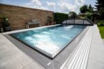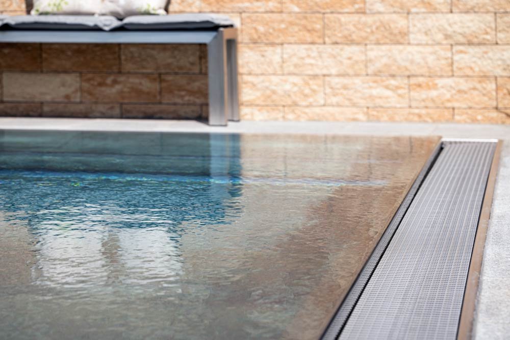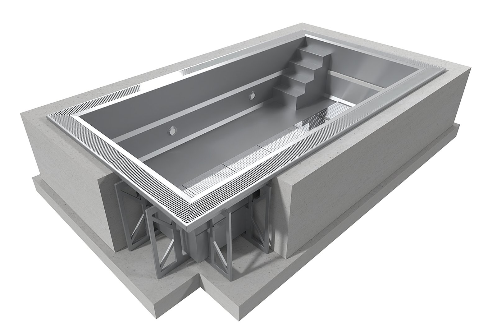 La construction en ossature fixée au corps de la piscine en usine permet d’adapter le coffrage à toutes les classes de sols.
