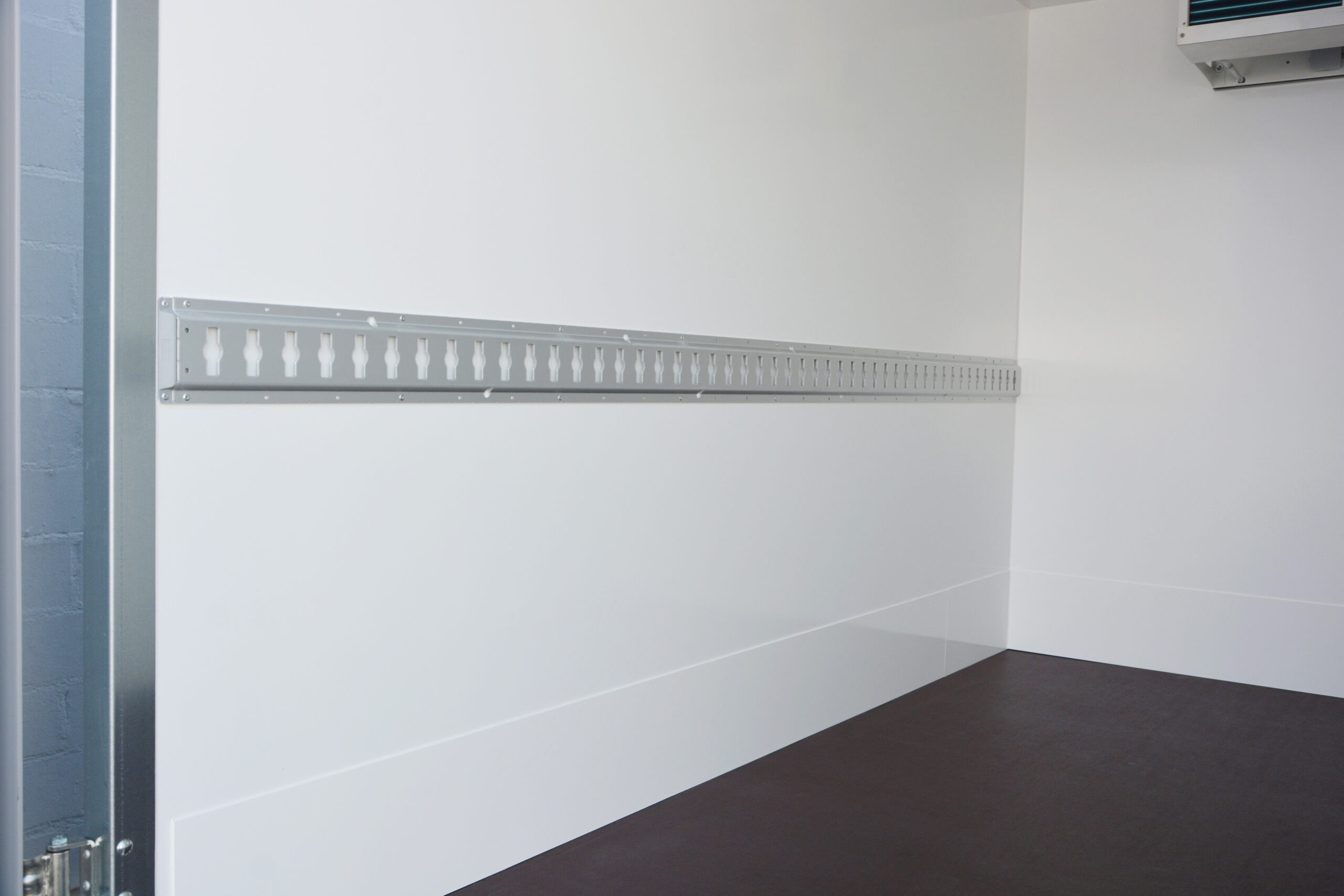 - Rail d’arrimage en aluminium monté sur les parois latérales gauche et droite, hauteur : 850 mm ;