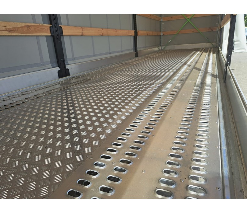 Surface de transport : tôle LOHR sur les côtés + plaque d’aluminium striée au centre